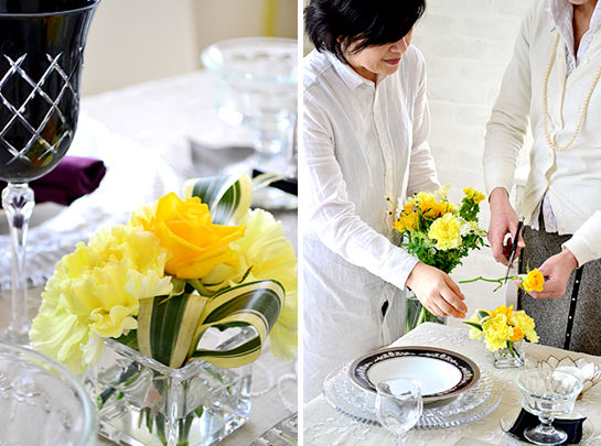 みんなで楽しくお花を活けたら、その後の食事がもっと楽しくなります。