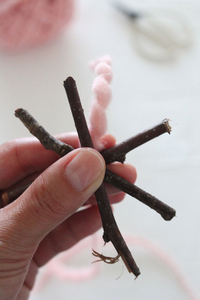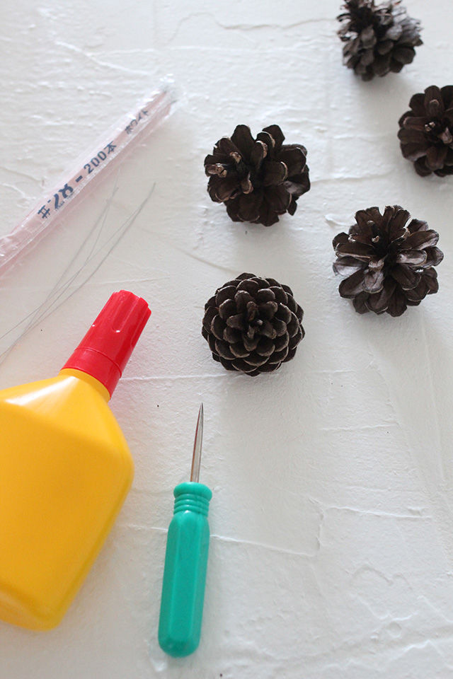 木の枝と松ぼっくりでオーナメントを作ることにしました。