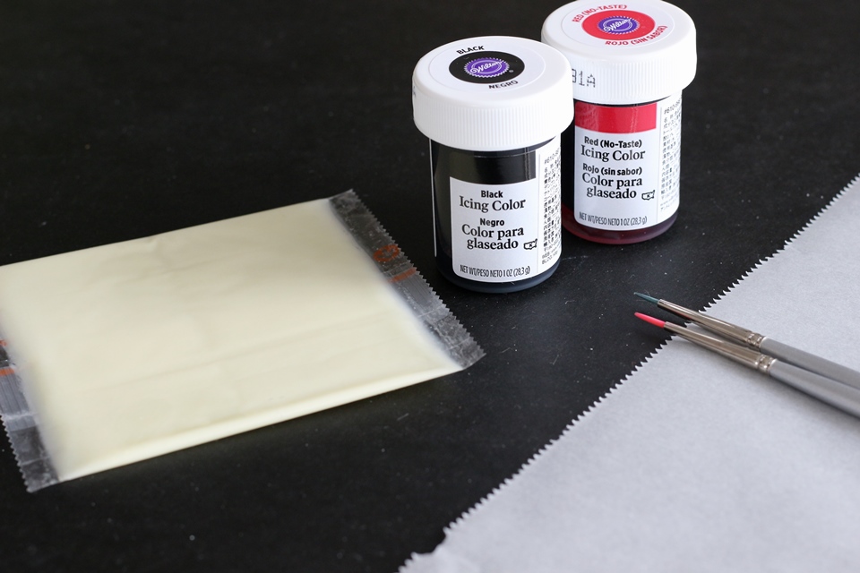 食紅は粉や液体のタイプよりもそのまま使える、ウィルトン社のジェル状のものがお薦めです。ネットや製菓材料のお店で購入できます。