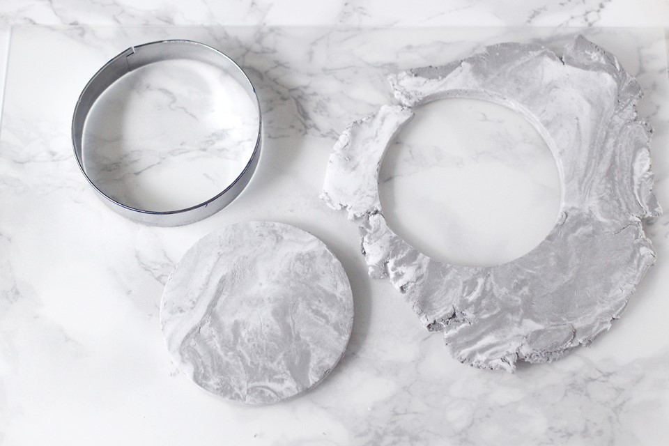 好きな色合いの場所を見つけたら、セルクルで型抜きします。