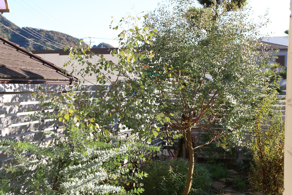 我が家は、グニーユーカリとユーカリ・ポポラスの2種類を植えています。夏の頃、コガネムシが大量発生して、ユーカリの葉っぱを食べるので、毎朝コガネムシ退治が日課になっていました。そのおかげか、ユーカリの葉の穴がひどくならずにすみました。