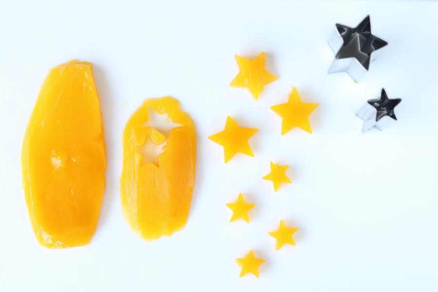 今回はマンゴー缶を使いましたが、黄桃缶などお好みのフルーツでOK。選んだゼリーの色に合わせてフルーツを変えると、カラフルになり可愛くなります。