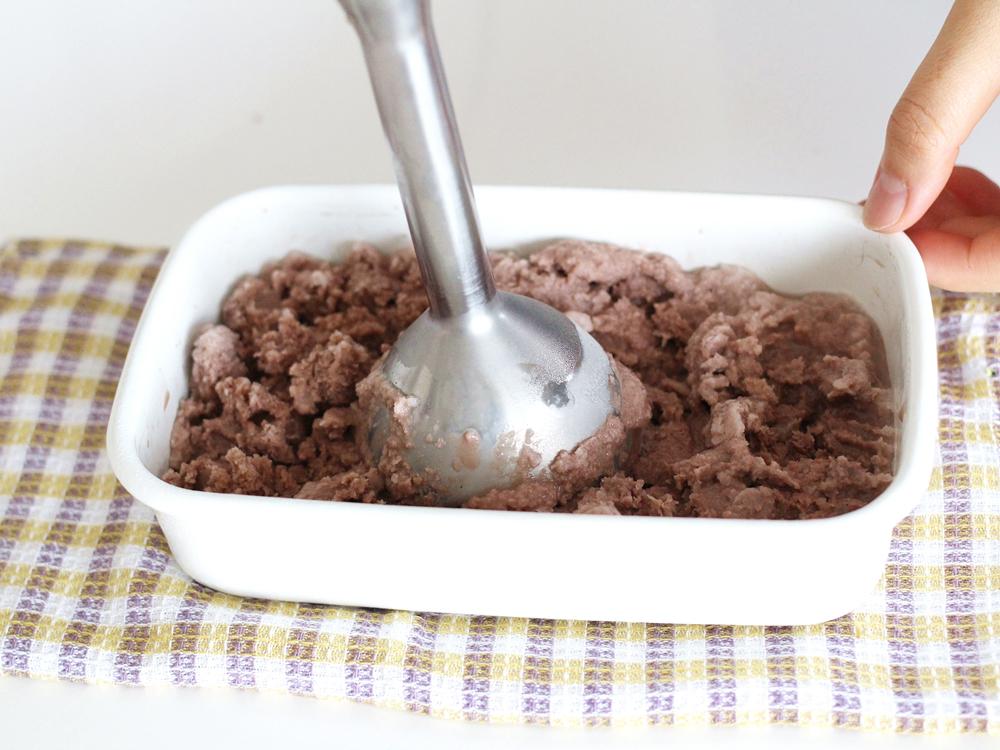 2~3時間冷凍庫で凍らせブレンダーをかける、を2~3回繰り返します。