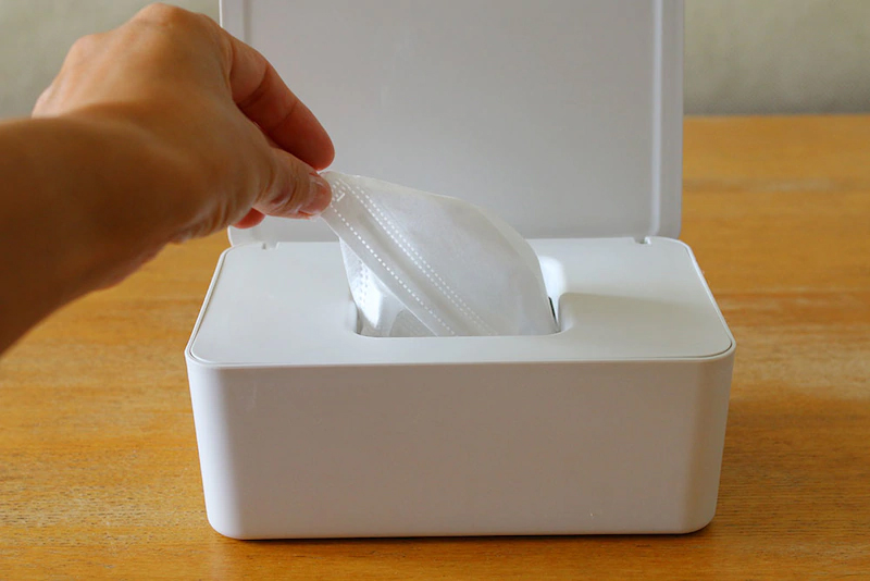 テーブルの上に圧迫感があったウェットシートケースを、わが家ではマスク入れとして使うことにしました♪