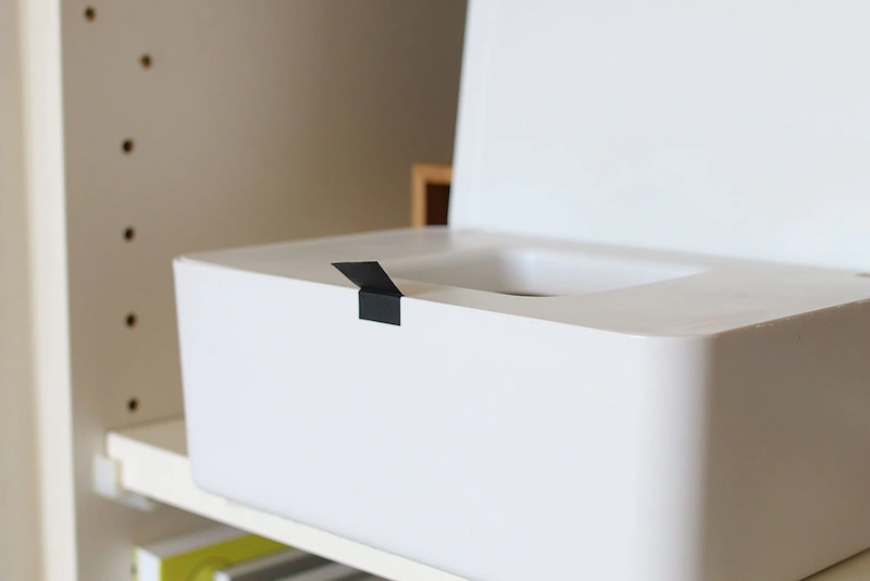 市販のウェットティッシュやフローリング掃除用のシートのパッケージを隠すことができるので、インテリアの邪魔になりません。