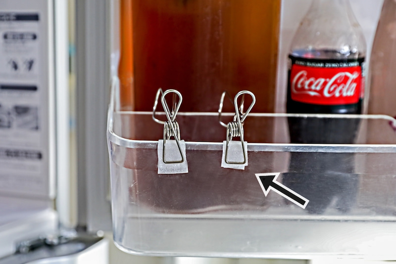 この方法ならクリップの位置を移動させるだけで、冷蔵庫の好きな位置に仕切りを作ることができます。