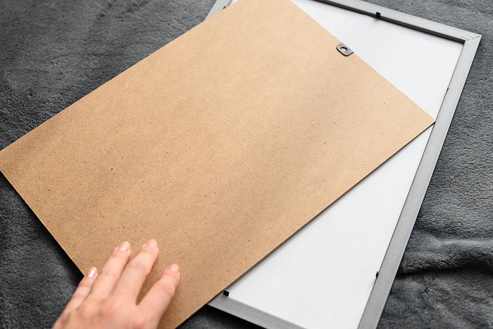 ポスターの下に白紙を1枚入れると、板の色が透けずに綺麗に見えますよ!
