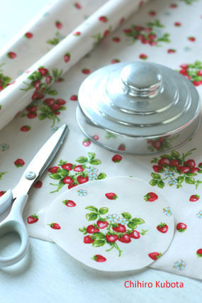 『人気アイデア:イチゴ柄のオイルクロスで簡単コースター』