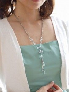 きれいなグリーンのワンピースに身につけたのはアクアマリンとクリスタルの
