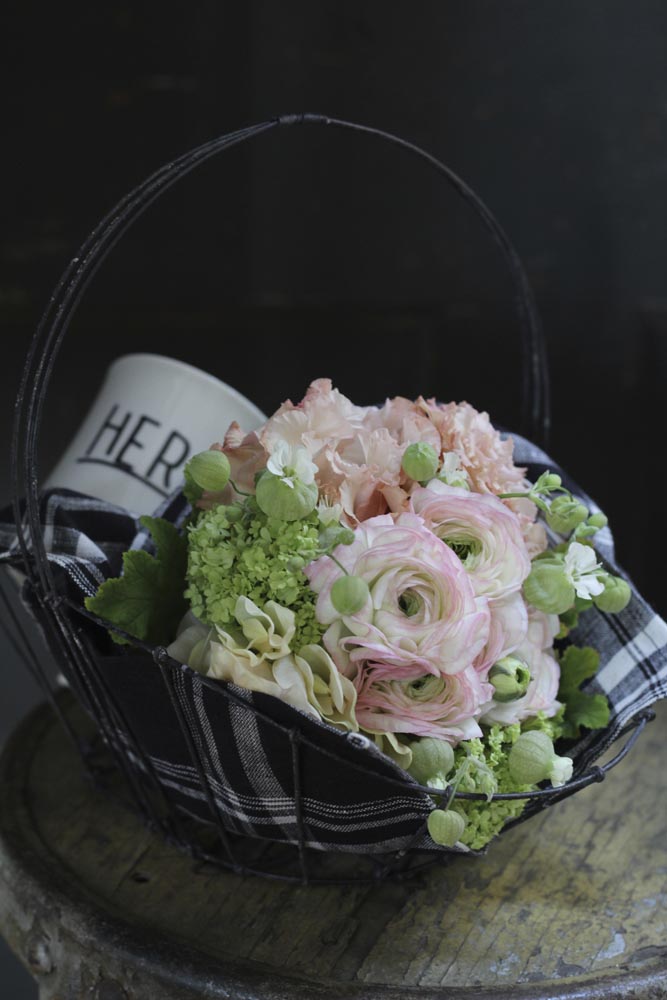 ラナンキュラス、スイトピーなどの春の花。