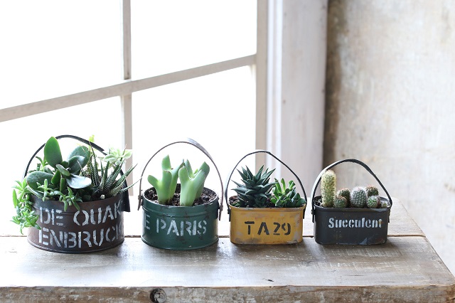 100均の焼き網で作った多肉植物の寄せ植えバッグ、ショルダーにして飾ろう