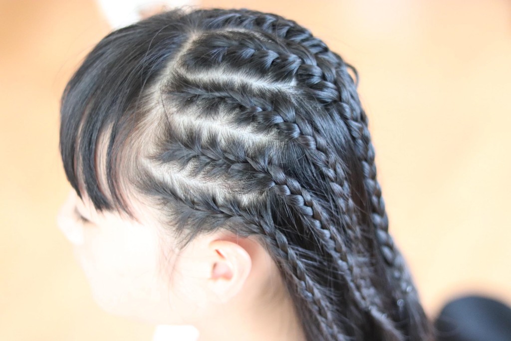 編み込みができる方は、よりコーンロウっぽいヘアスタイルを作ることができます。