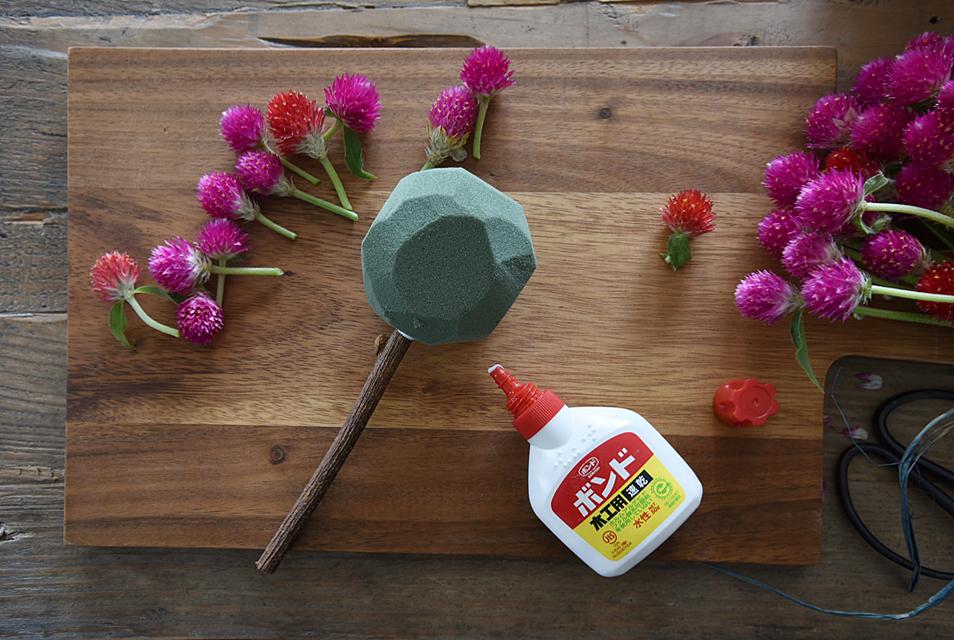 ■千日紅のトピアリーアレンジの作り方