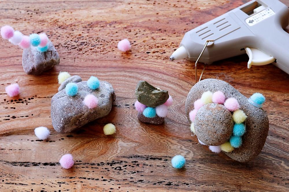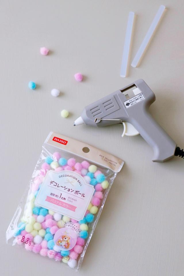 今回はその思い出の小石にグルーガンで、石と100均で売っているデコレーションボールを付けてみました。