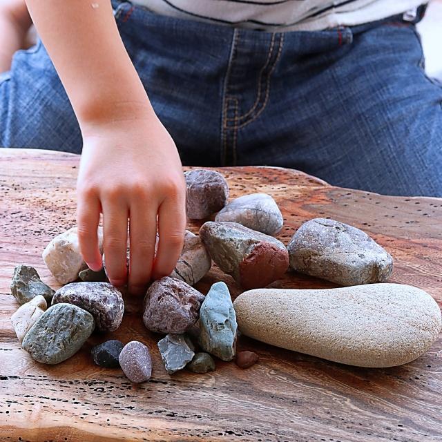 石の山から想像力を働かせて新しい形を考えます。