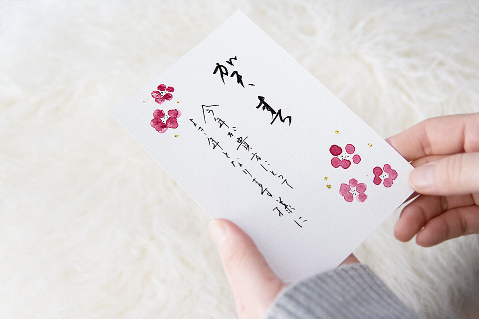 2.綿棒で描く梅の花♡ 和風手書き年賀状