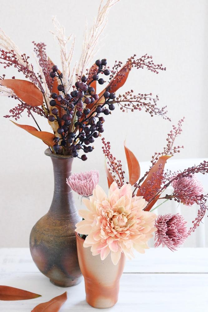 ススキや実物と一緒にいけると秋を感じるアレンジになります。